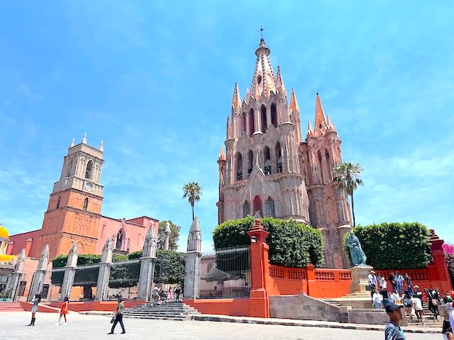 サン・ミゲル・デ・アジェンデで、一番人気があるのは「サンミゲル教区教会(Parroquia de San Miguel Arcángel)」。その独特なゴシック様式の外観で多くの観光客を魅了しています。特に、ディズニー映画『眠れる森の美女』のお城のモデルになったという噂が広まり、注目を集めています。