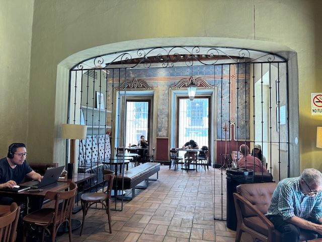 店内も広々としており、高い天井と大きな窓から自然光が差し込み、明るく開放的な雰囲気を作り出しています。また、店内のインテリアは、サンミゲル・デ・アジェンデの伝統的な建築様式を取り入れたデザインが施されており、地域の文化を感じることができます。