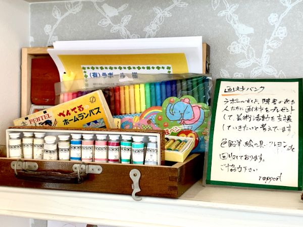 おうちに使わない画材はありますか?ラポールの店舗で引き取っていただけます。 障がいのある方の芸術活動や自立支援に役立ててもらおうと提携する施設などに寄付されているとのこと。