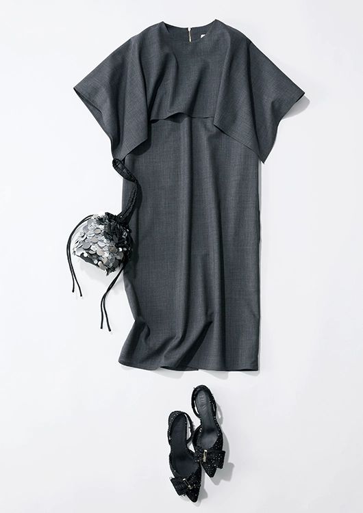 ワンピース¥42,900/アンスリード(アンスリード青山店) バッグ¥74,800/ジャンニ キアリーニ(ジャンニ キアリーニ 銀座店) パンプス¥18,700/ル タロン グリーズ(ル タロン グリーズ ルミネ新宿店)