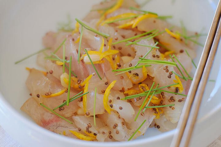 3. 【柑橘の香りで魚臭さゼロ】手巻き寿司の具にも使える"鯛のユッケ"