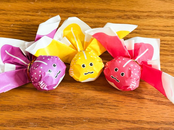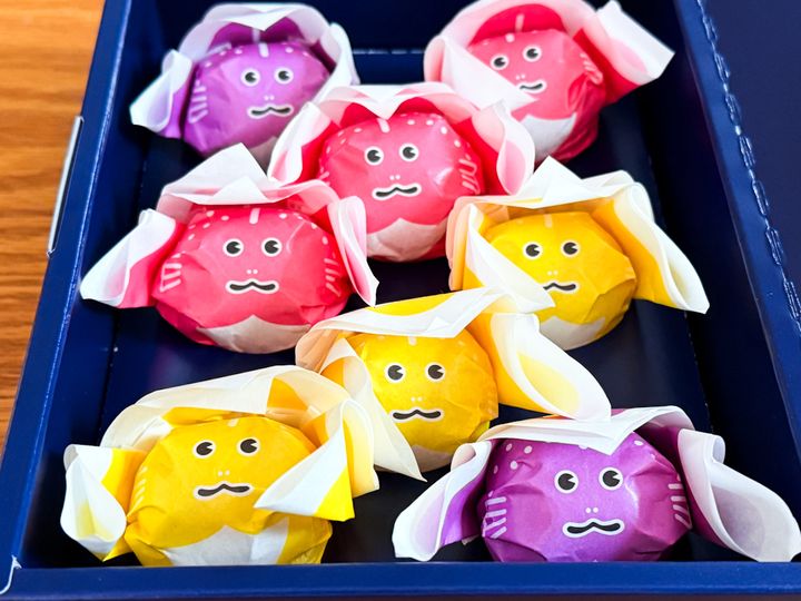 今回購入したのは、アップル・カシス・巨峰の3種類の味が入った8個セット。箱を開けると、ずらりと並んだ金魚ねぶたたちが登場し、思わず「可愛い!」と声が出てしまうほど。