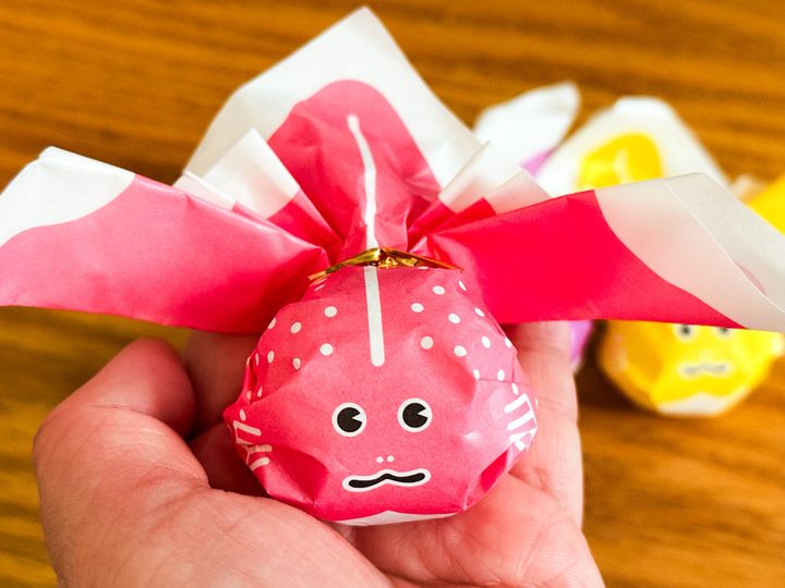 個別包装は金魚型の提灯を忠実に再現した立体的なデザインで、細部までこだわりが詰まっています。