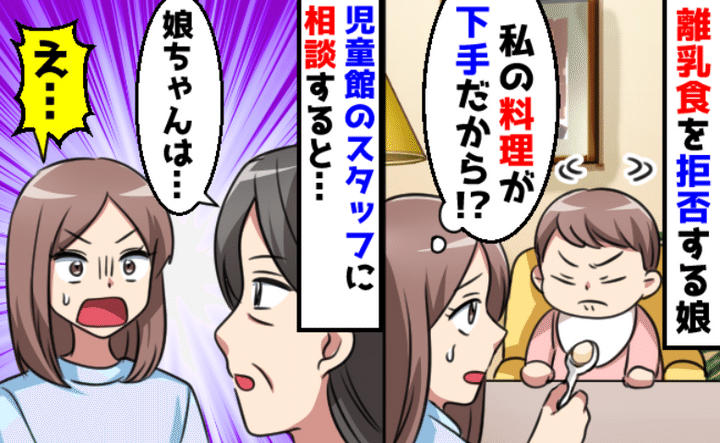 「お母さん…?」離乳食を拒絶する娘に手こずる私。児童館のスタッフに相談するとまさかの返答が!