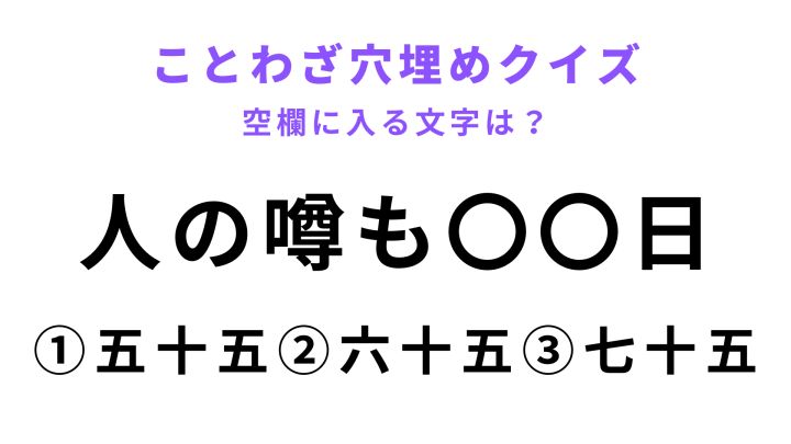 ことわざ「人の噂も〇〇〇日」には、なんの文字が入る?