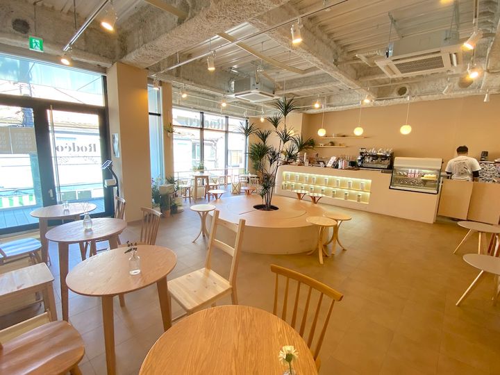 「Rodeo Bakery&Coffee」の内装デザインを手掛けたのは、店長を務める韓国人のパクさん。韓国で流行っているカフェをイメージして作ったそう。丸みのあるインテリアが多く配されているためやわらかい印象で、落ち着きのある空間になっています。