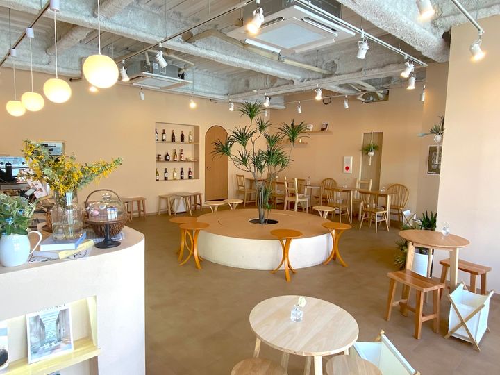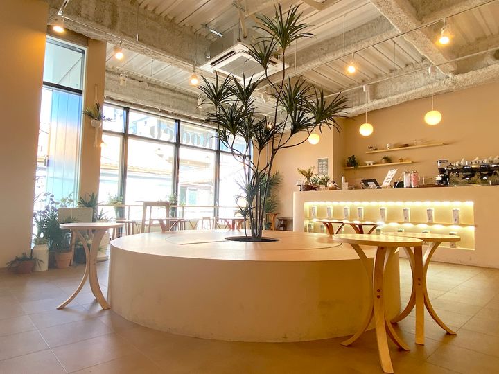 座席はカウンター、テーブルで全40席あるのですが、おすすめの席は店内中央にある丸いベンチ。中心にグリーンが植えられたおしゃれな座席で、友人と横並びになれば会話もはずみそう!