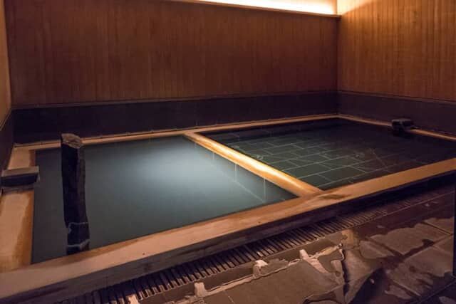 温泉は数種類の源泉を使った混合泉で、泉質はpH5.6の単純硫黄泉。まずは37度のぬる湯で身体を慣らし、しっかり温まる41.5度のあつ湯を楽しむのがおすすめの入り方。
