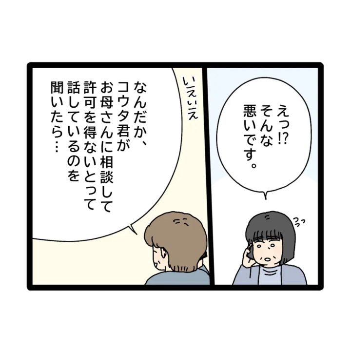 「えっ!?そんな悪いです」と答える義母に、「いえいえ、なんだかコウタくんが、お義母さんに相談して許可を得ないとって話しているのを聞いたら・・」とお母さんが言うと、