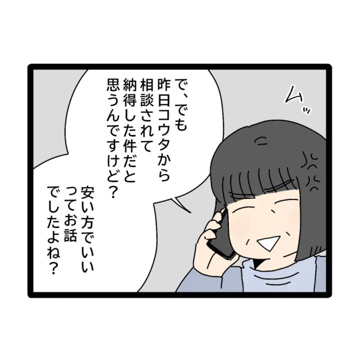 ムッとしながら、「で、でも昨日コウタから相談されて、納得した件だと思うんですけど?安い方でいいってお話でしたよね?」義がそう言いました。