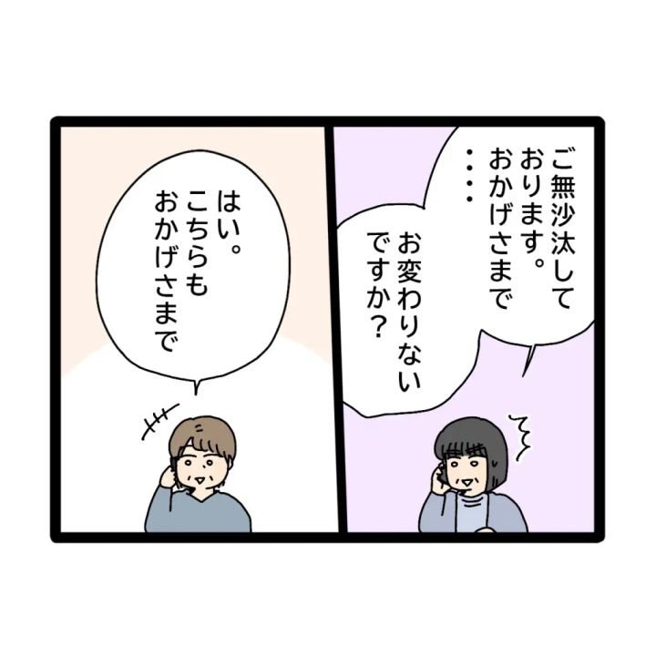すると、「ご無沙汰しております。おかげさまで・・お変わりないですか?」義母の言葉に、「はい。こちらもおかげさまで」と答えるお母さんは、