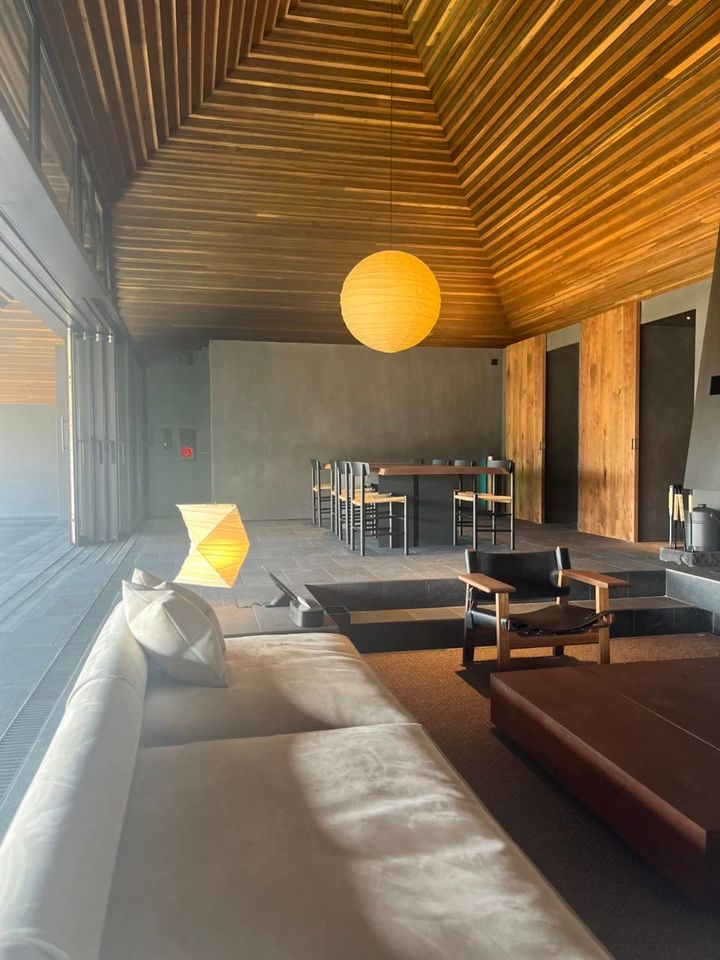 【NOT A HOTEL MINAKAMI「TOJI」】のヴィラの一番の見どころは、2階にあるリビングダイニングです。天井高6mもありながらインテリアは低めに設定されているので、かなりの開放感を感じられます。しかもリビングダイニングを囲むように天然温泉やインフィニティプール、サウナ、水風呂を配置しているのも特徴。二重ガラスの大きな扉を開けると外と内がシームレスになり、みなかみの雄大な自然を一望できるんです。伺ったのが4月末だったので、春の爽やかな風を感じられてすごく気持ちよかったです!