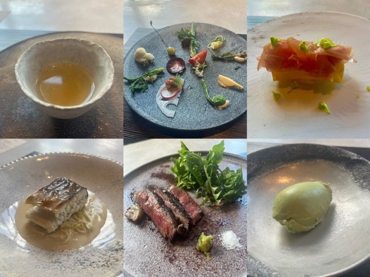 筆者が伺ったときは、クロモジなどの採れたての新芽を使ったコンソメ茶、目も鮮やかな地元の野菜を主役にした前菜、熾火(おきび)の遠赤外線でふわふわに焼き上げた岩魚、45日間熟成したあかぎ牛などを堪能させていただきました。初めて味わった食材も多く、なかでもデザートに提供されたふきのとうのアイスには感動! ちょっとクセがありながらも爽やかな味わいで、すごく好みの味でした。