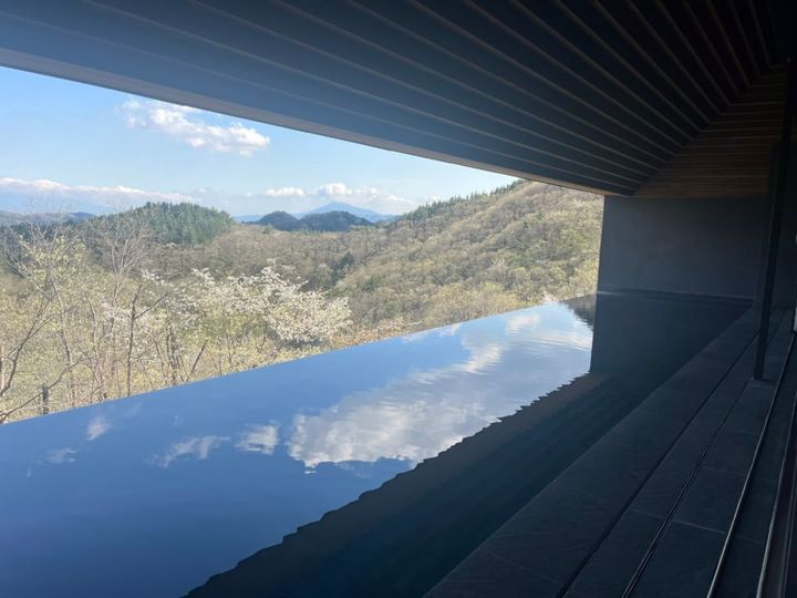 みなかみの雄大な自然を眺めながら楽しめるインフィニティプール。空の映り込みも本当に美しかったです!