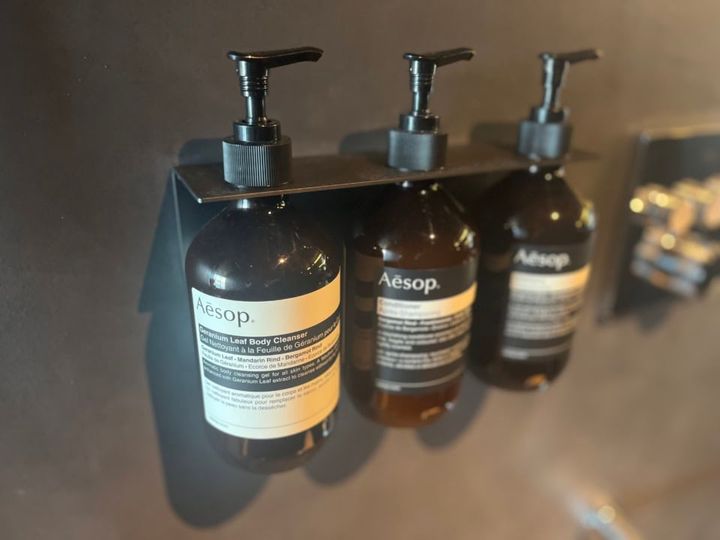 【NOT A HOTEL MINAKAMI「TOJI」】の楽しみといえば、みなかみの圧倒的な自然を眺めながら身を温められる天然温泉ですよね。黒でまとめられたシックでモダンな空間に仕上げられ、外へ続く扉は開閉が可能。こちらもリビング同様に内湯と外湯がシームレスでつながっていて、豊かな泉質を存分に味わえます。