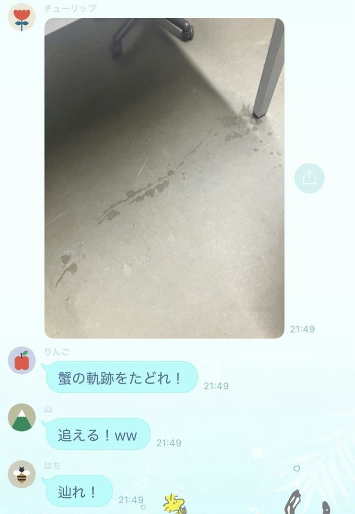 3. 「カニ脱走しとる」⇒「追える!」研究室の逃走劇に22万いいね「床が乾く前に」「カニに翻弄…」