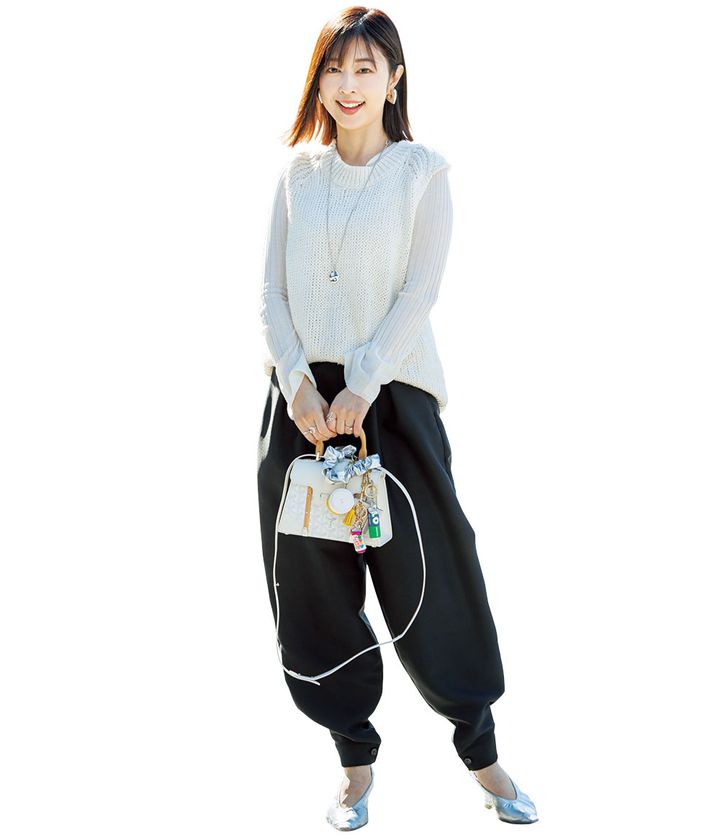 『持ち手がウッドのワンハンドルバッグはきちんと感があるので母シーンに最適。ランチの日はアニヤのチャームをじゃらづけします。』