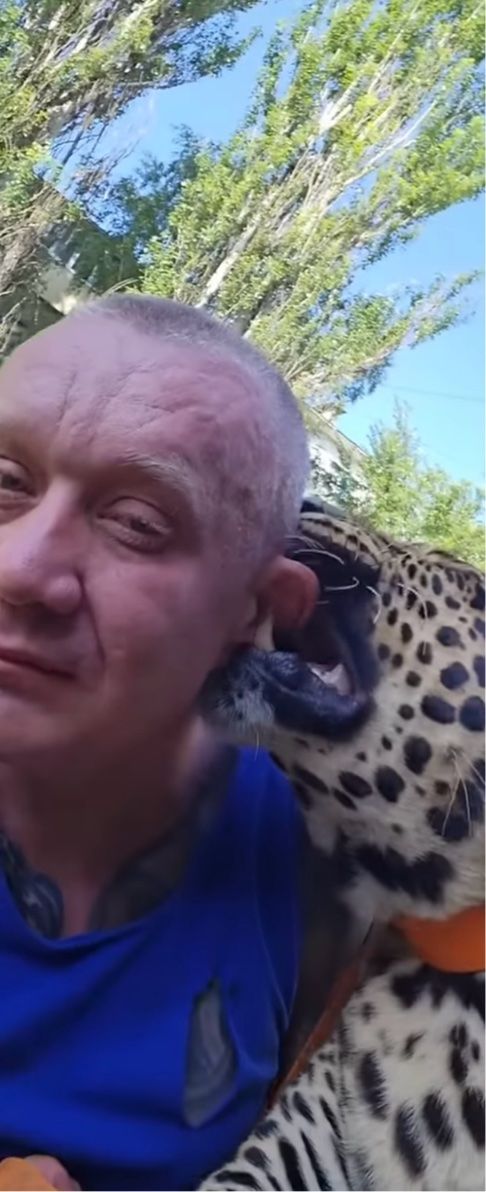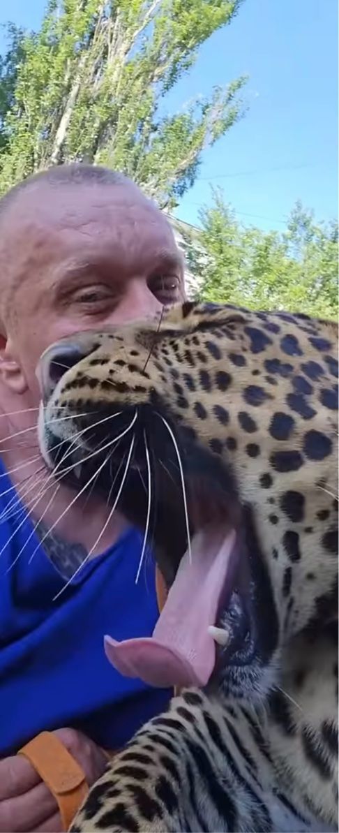 なんと、ヒョウは飼い主さんの顔をカプッとしました!