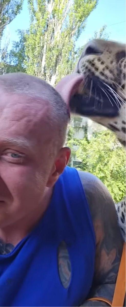 今度は、甘えるように飼い主さんの顔をぺろぺろ。 見た目こそ迫力がありますが、すっかり懐いているようで子猫のような愛らしさのある行動を見せてくれています。