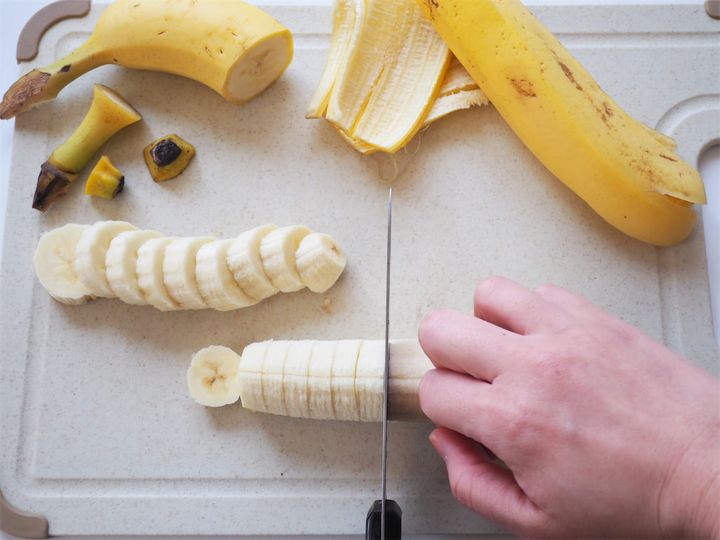 1. バナナの両端を少し切り落としてから皮を剥き、輪切りにする。