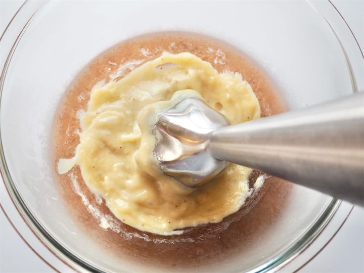 ペーストがねっとりしていたので泡立て器では混ざりにくく、今回はブレンダーで混ぜ合わせました。