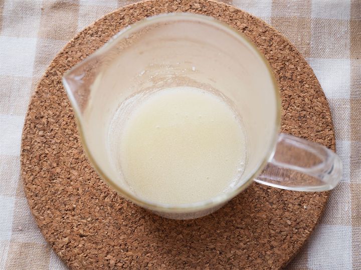 電子レンジから取りだしたら、溶け残りのないよう混ぜ合わせる。