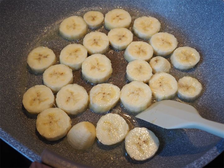 3. 21のバナナを入れ、混ぜ合わせながら炒める。