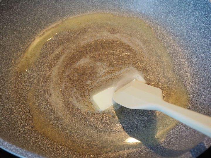 2. フライパンを火にかけ、バターを入れて溶かす。