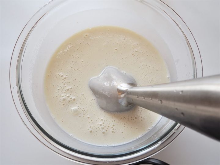 5. 4をボウルに入れ、ハンドブレンダーでなめらかになるまで撹拌する。