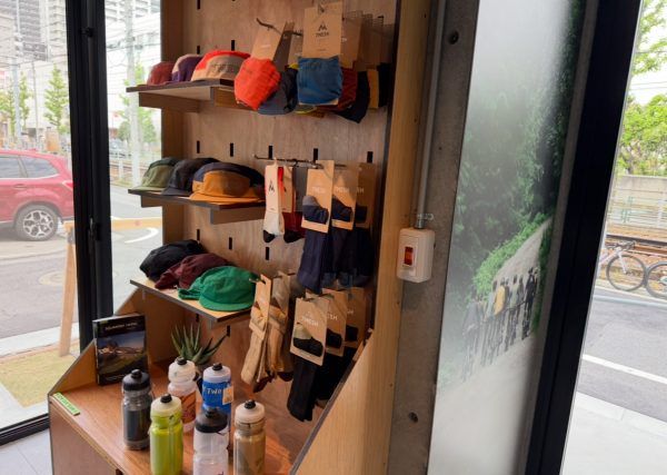 カフェの一角には、スポーツ用品やアウトドア用品を扱うスタイリッシュなショップが併設されています。