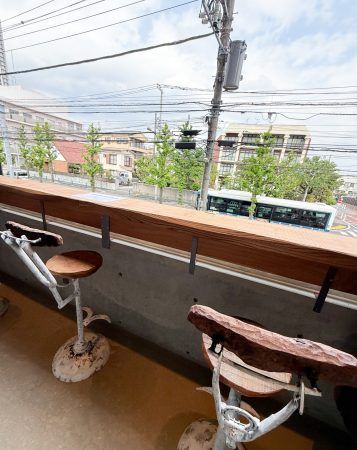 2階のカウンター席は電車を眺めながらコーヒーを楽しめます。