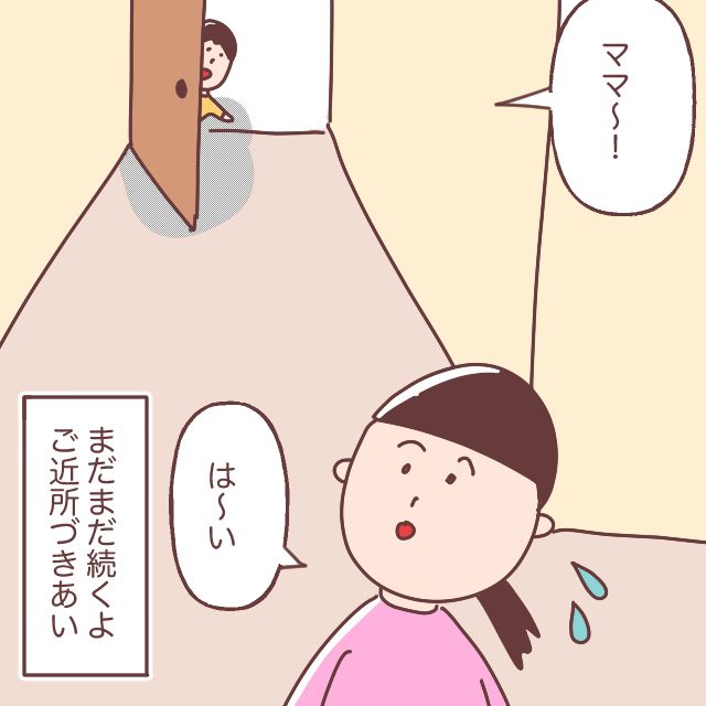 すると、「ママ~!」部屋の中から娘が私を呼ぶ声が聞こえ、「は~い」と返事をした私。3人のおばあちゃんたちとのご近所づきあいは、まだまだ続きそうです。