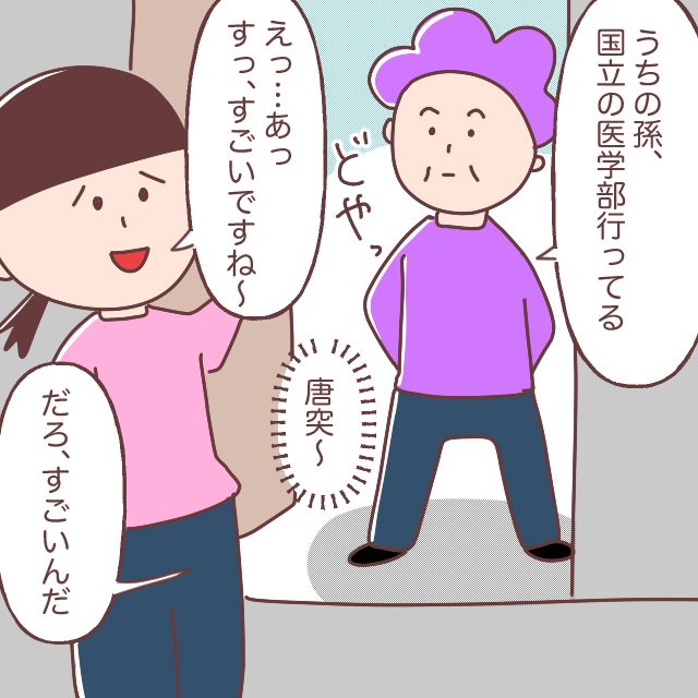 突然家にやって来て、「うちの孫、国立の医学部行ってる」と自慢された私。「有名企業に勤めてる」だの、「役所にいる」だのと、お孫さんが華麗な経歴をお持ちだと、おばあちゃんもついつい自慢したくなってしまうんですね。