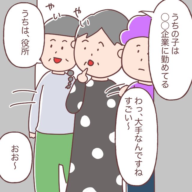 すると、さっきまでいなかったはずの2人のおばあちゃんまで!!「うちの子は〇〇企業に勤めてる」と言う言葉に「わっ、大手なんですね。すごい~」「うちは役所」と言うおばあちゃんには「おお~」と感嘆の声を。