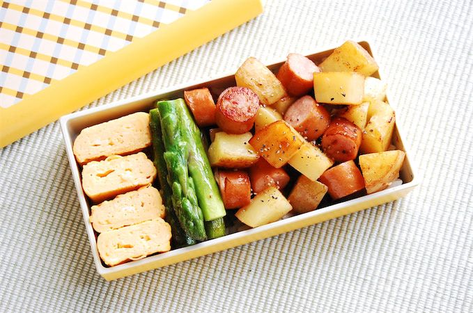 3. 【お弁当は毎日コレがいい♡】ぜ~んぶ卵焼き器1つで出来る!新ジャガやウインナーゴロゴロ弁当作ろう