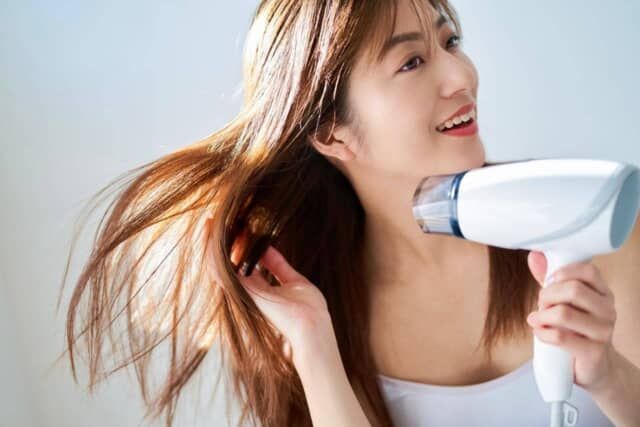 ヘアオイルやミストをなじませてからドライヤーを使うことで、髪内部の水分蒸発を防ぎ、褪色やパサつきを抑えることができます。とくに毛先はダメージを受けやすいので、念入りにカバーしましょう。