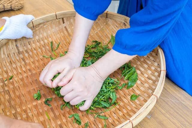 この作業を数回繰り返します。力がいる作業ですが、昔は各家庭でこうしてお茶が作られていました。