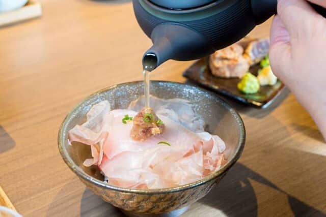 |朝食は高級緑茶で味わうカンパチのお茶漬け