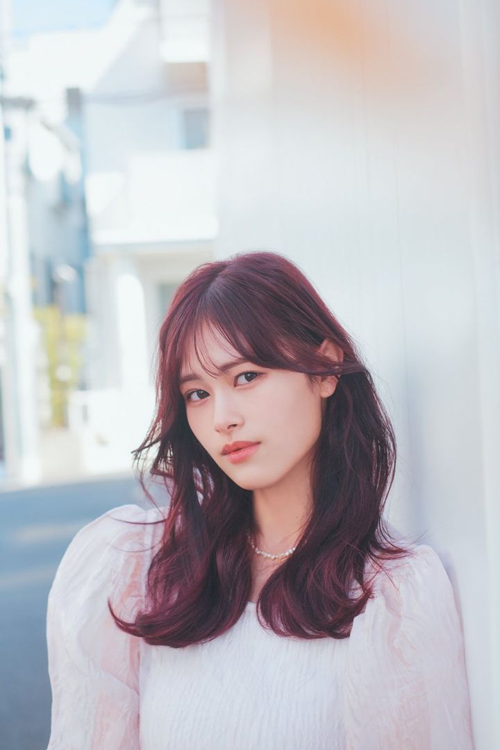 ゆるやかなカールが重なるシフォンのような軽快ロング。顔まわりに流れるような毛束をつくり、全体的にレイヤーを入れて軽さをプラス。ハチ上は外巻き、ハチ下は外巻きから始まるウエーブで無造作な動きに。日差しに映えるピンクカラーもときめき度抜群。ラベンダーが入っているから、色落ちしても可愛い。