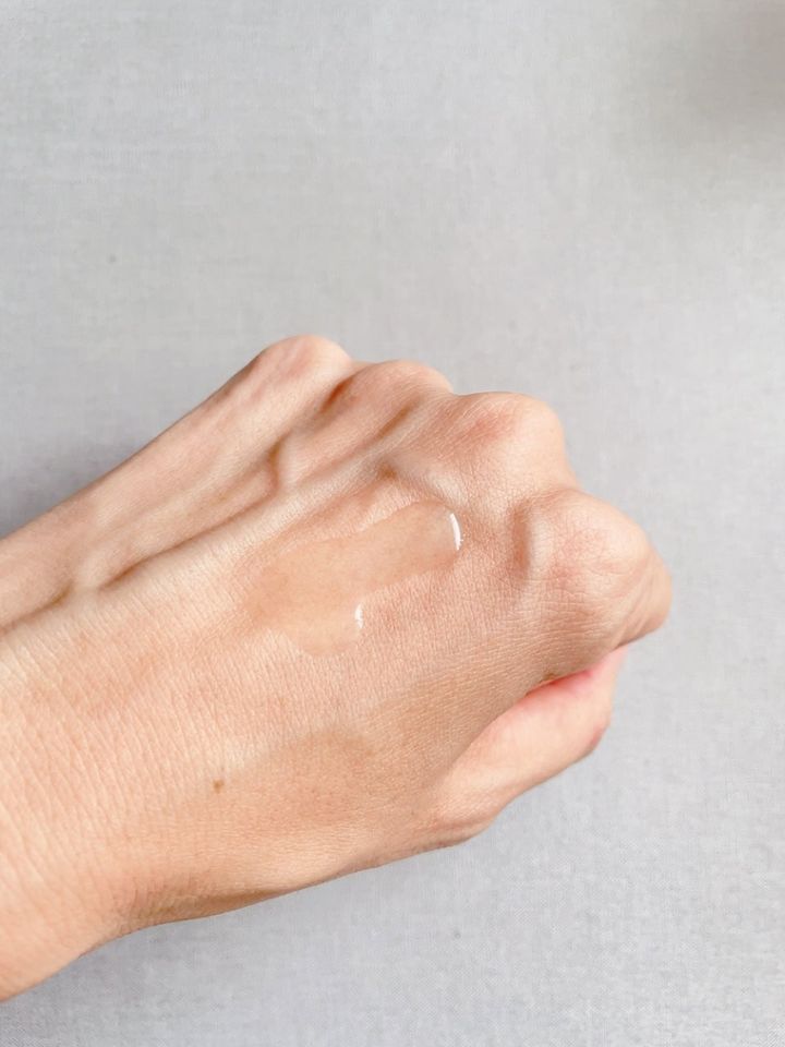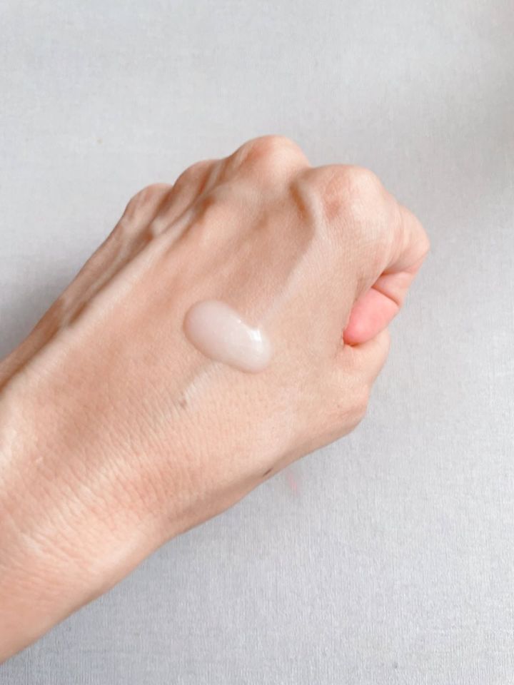 2プッシュを洗顔後の肌に塗布。とろみはありつつ、すっとなじむのでその後のスキンケアを邪魔しません。