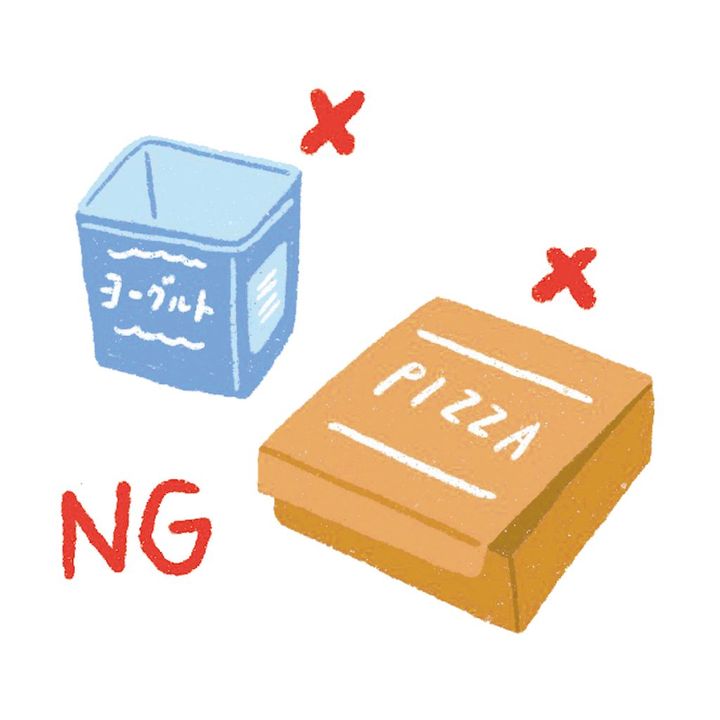 A ヨーグルトの紙パック、宅配ピザの空き箱はリサイクルできません