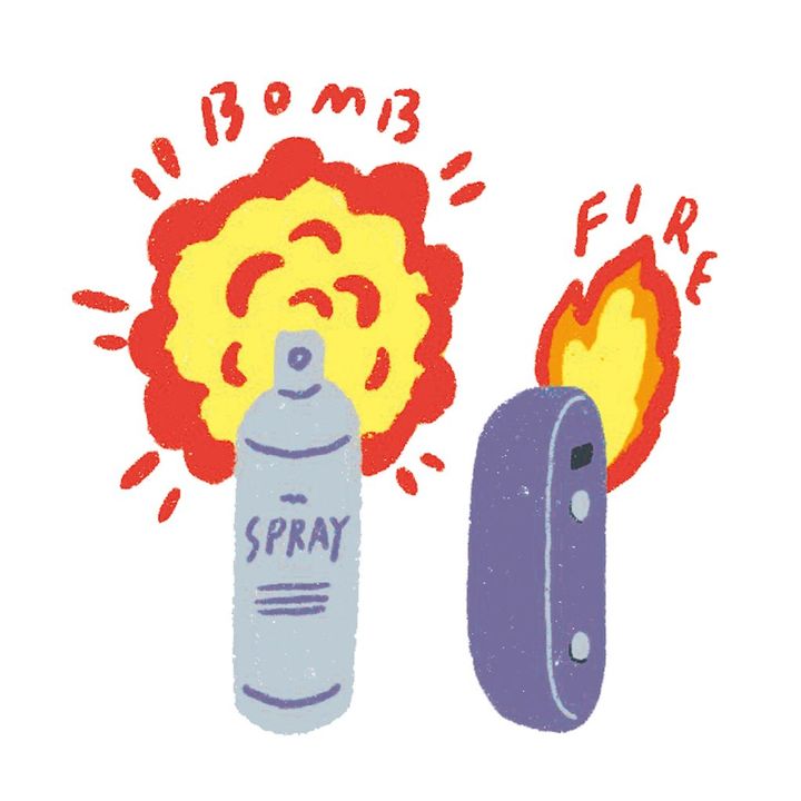A スプレー缶、ガス缶、リチウム電池は引火の可能性があります