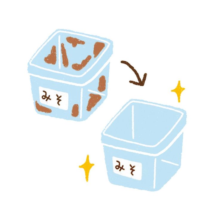 汚れているプラスチック容器は私たちが手作業で洗ってからリサイクルに回しています。時間がたつと汚れが腐敗して悪臭を放つため、水ですすいだり、使用済みのティッシュペーパーなどで汚れを拭き取ってから捨てましょう。