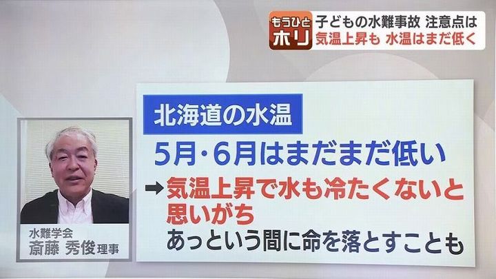 ・北海道は5月、6月はまだまだ水温が低い。気温が上がると、水も冷たくないと思いがちだが、実は水温は低くて、あっという間に命を落とすこともありうることを、頭に入れ行動してほしい。
