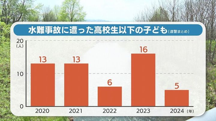 2020年以降に水難事故に遭った高校生以下の子どもの人数は2023年、16人にのぼっています。