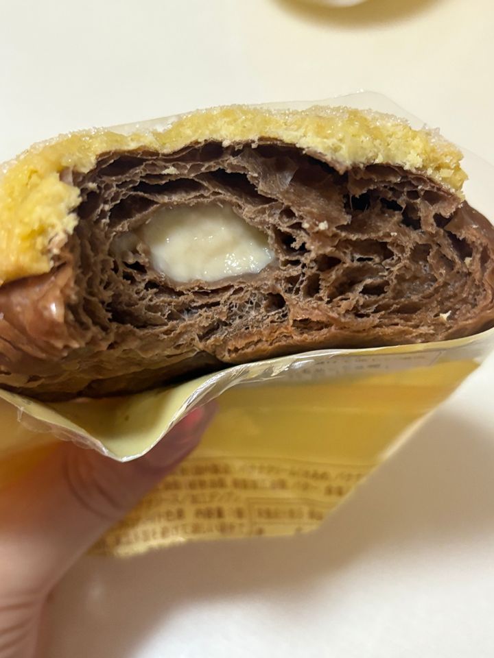 ココア風味のデニッシュ生地に、バナナ味のクッキー生地。