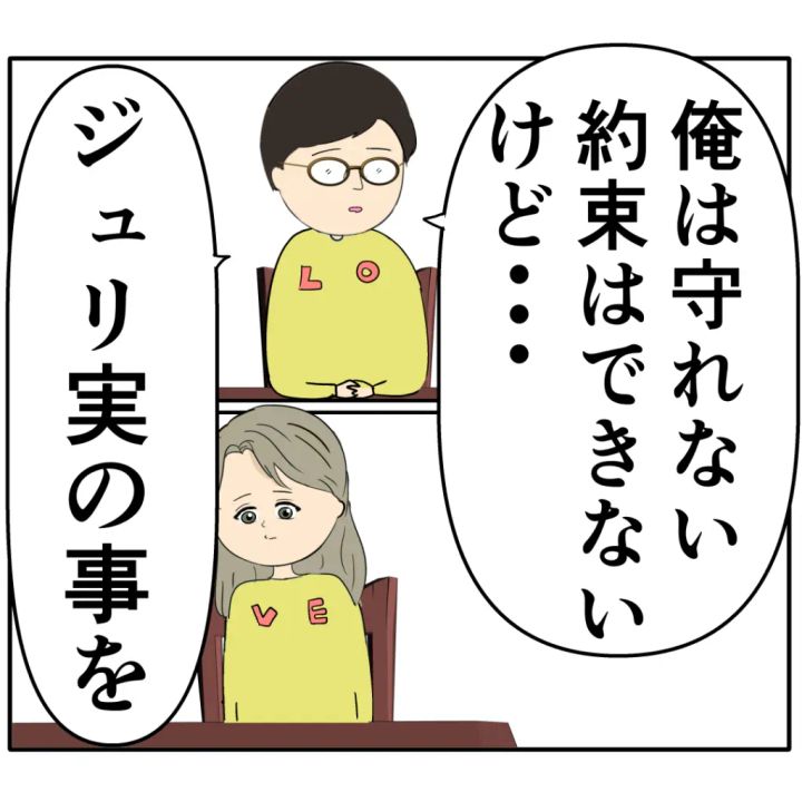 自分のしてしまったことを理解したジュリ実さんに、めが根さんは「俺は守れない約束はできないけど・・ジュリ実の事を」
