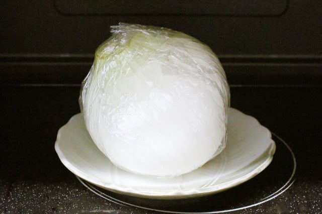 1. 皮を剥いた新玉ねぎをラップで包み、電子レンジ(600W)で4分ほど加熱します。