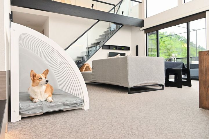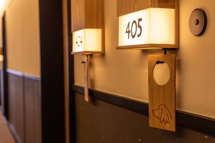全15室の客室は「STANDARD ROOM」、「FAMILY ROOM」、「CONNECTING ROOM」の3タイプ。日本の伝統工芸をデザインに取り入れつつ、ペットと過ごせる時間が重視されている。靴を脱いでリラックスできる造りで、大きなソファーやテレビを完備。浴室には大小シャワーがあり犬と一緒に利用できるほか、防音・加湿機能も備える。