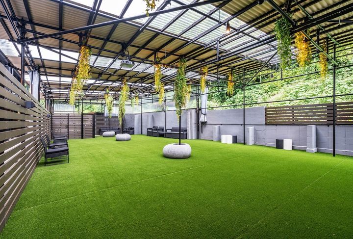 10タイプ188室の客室を有する同ホテルでは、2タイプ17室で犬と宿泊ができる。施設内には、犬連れのゲストだけが利用できる「OMOドッグガーデン」もあり、至れり尽くせり。テーブルやソファスペース、フォトスポット、24時間使える犬用のシャワールームも準備され、その奥には、地上60メートル・159平方メートルの屋外ドッグランを設けた。